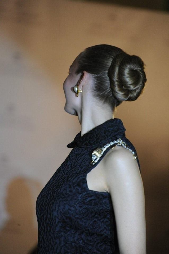 — именно этот чудесный формат вспомнился мне в связи с недавним показом в Академии моды. Чтобы сделать хороший и запоминающийся домашний бал, точно так же нужны вкус, любовь к жизни и профессионализм. Всё это мы могли как наблюдать, так и демонстрировать; для нашей группы это было открытое практическое занятие, переходящее прямо в жизнь, в настоящее профессиональное событие. Марина, Даша, Ксюша и Аня помогали на бекстейдже: утюжили вещи, одевали моделей (я сразу вспомнила показ «БезГраниц Кутюр», и тот бекстейдж); Лена Климова работала как стилист, а потом вышла на подиум как модель; мы с Дашей Поповой брали интервью у гостей мероприятия.