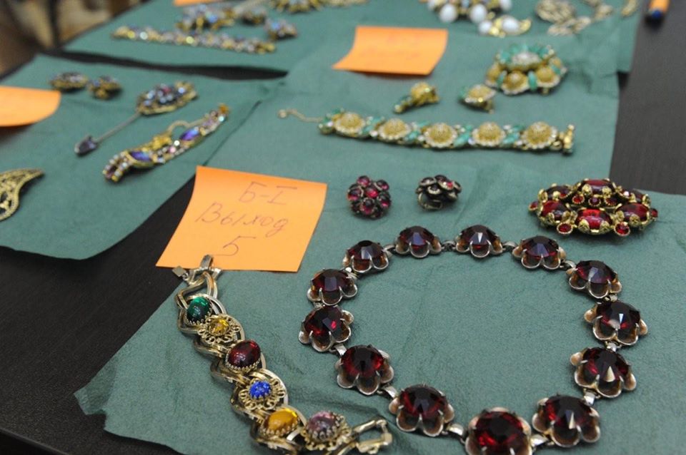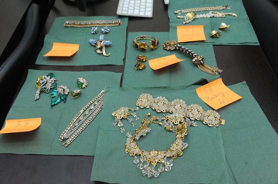 Главной темой второй части была винтажная бижутерия из коллекции Людмилы Соколовой. Вещи показали совершенно бесценные: например, брошь-эполет 50-х годов, или клипы для туфель 40-х, или восхитительный сет из горного хрусталя.