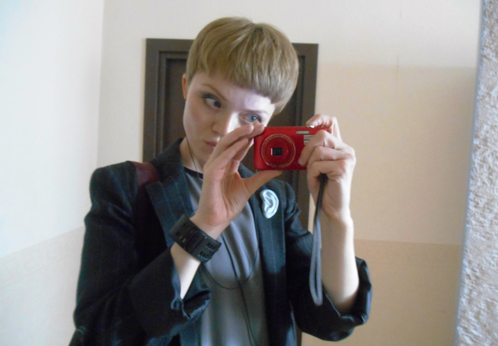 Ничто не предвещало таких ассоциаций, но они возникли. Даже синее ухо на лацкане не помогло: я тут, особенно в жёлтой примерочной, напоминаю один из образов Киоко Фукада — это, кто не знает, такая японская певица, она сыграла почти саму себя в фильме Такеши Китано «Куклы».