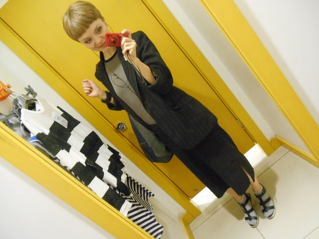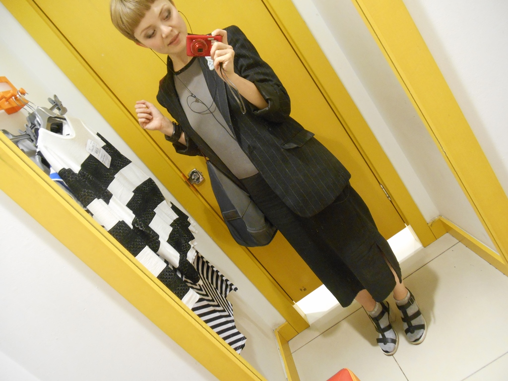 Я специально делала фото при разном освещении; оно меняет даже в целом смысл образа, а не то что восприятие одежды. Есть о чём задуматься тем, кто занимается обустройством примерочных.