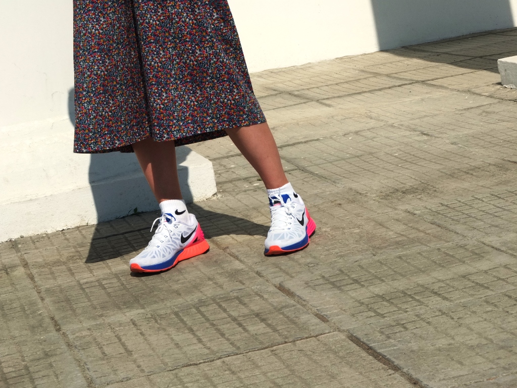 Я ходила так целый день. Обычно я не ношу беговые кроссовки просто так — во всяком случае, редко. Но «лунарглайды» — а) хорошо выглядят, настолько, что их можно сочетать с самой разной одеждой; б) в них не жарко. На ходу у них обнаружился ещё один приятный эффект — но о нём всё-таки в следующий раз.