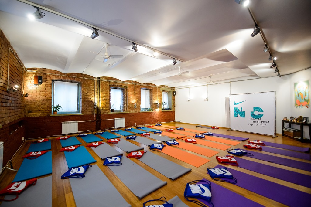 Это была совершенно чудесная дождливая суббота, потому что мы начали её на тренировке NTC, и не простой, а с элементами йоги. Место было выбрано такое, куда можно и не попасть самой, но где зато очень здорово оказаться в первый раз по приглашению: студия NYM Yoga в 5 минутах пешком от Арбата.