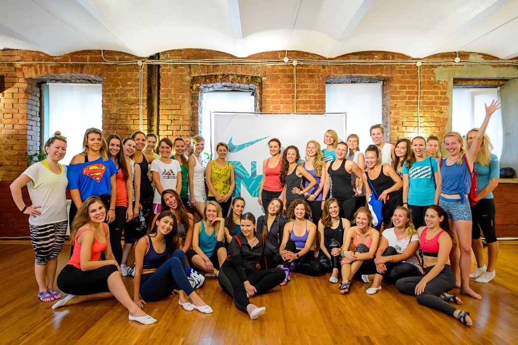 Перед тренировкой нам рассказали о новой коллекции Studio — для занятий в зале, и о приложении NTC.