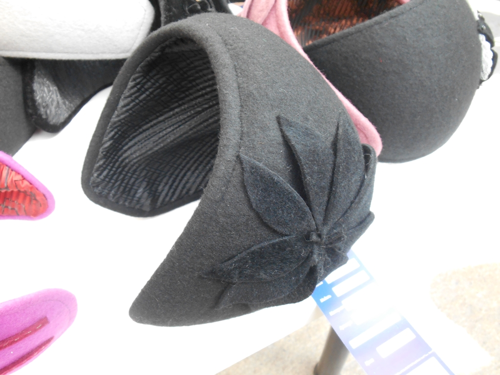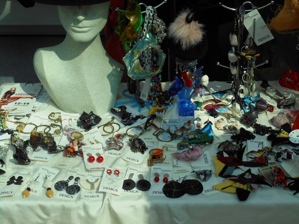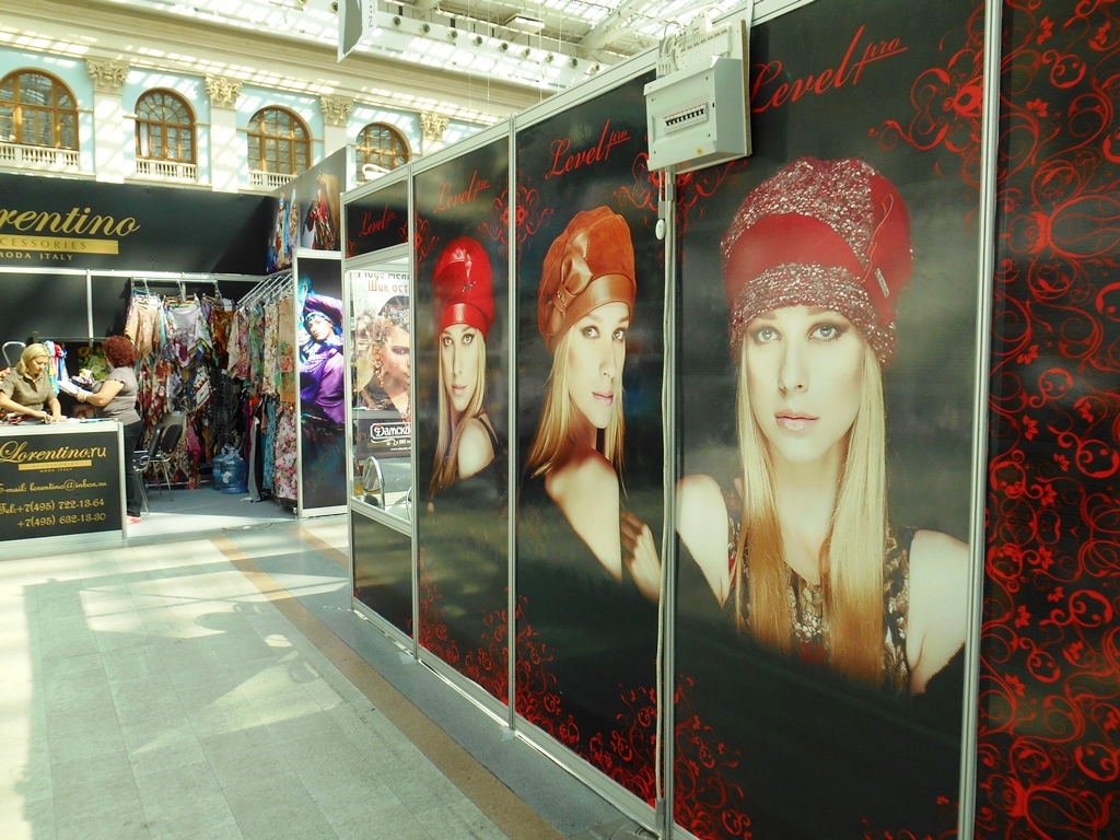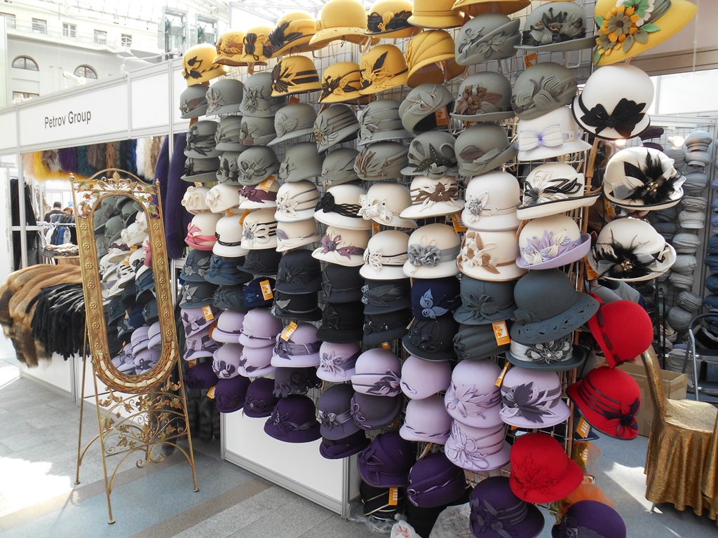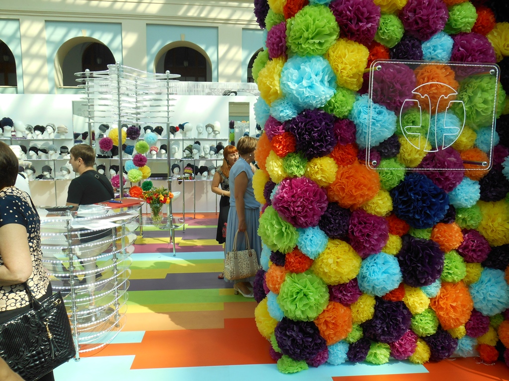 Забавно, но вот уже сейчас, рассматривая фотографии, я удивляюсь, как много на них действительно приличных беретов и шляп. Но в первый момент я вижу не их, а, как здесь, много сиреневых лиан. Дорогие оформители стендов, вот они, последствия вашей «красоты»: искаженное впечатление от головных уборов. А ведь оно могло быть вполне приятным.