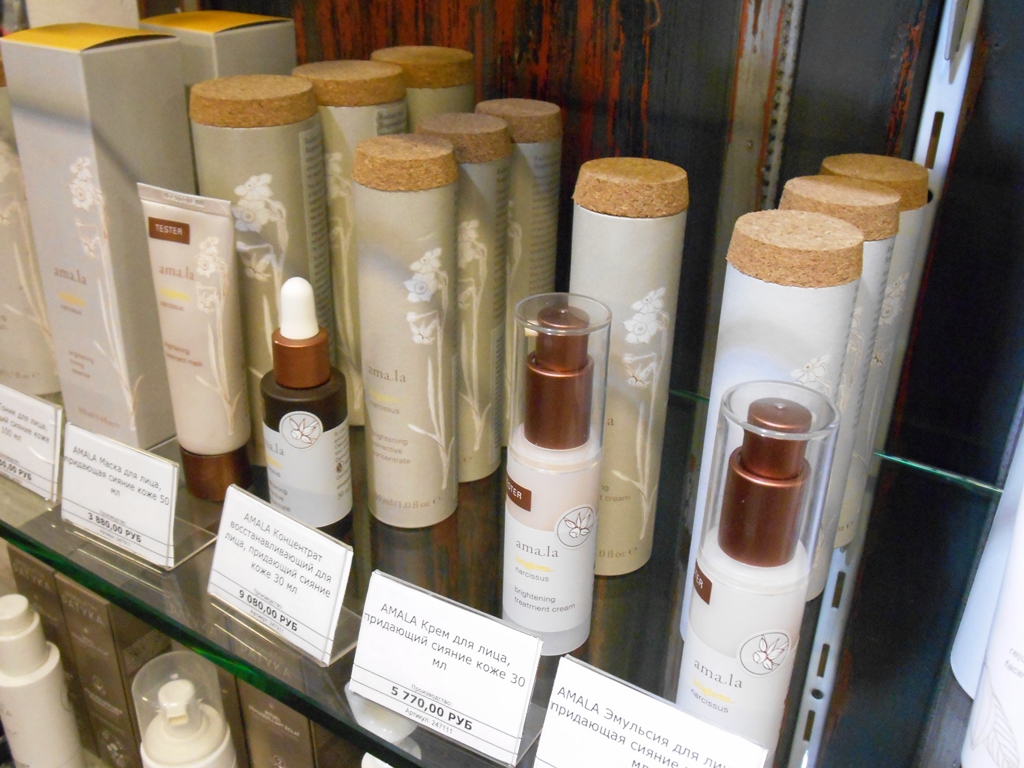Это Amala, немецкая органическая спа-марка, у неё огромное количество линеек. Они сотрудничают с фермерами по всему миру, которые выращивают для них ингредиенты; с одной стороны, помогают фермерам, с другой – гарантированно получают чистый полезный продукт, выращенный с любовью и в благоприятных для этого продукта условиях. К тому они выступают за эко-фермерство, когда нельзя ничего удобрять химическими удобрениями и обрабатывать землю с помощью машин, всё вручную и с естественными удобрениями.