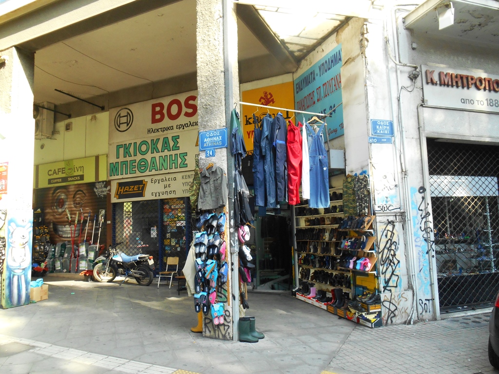 Напоминания о происхождении многих русских слов встречаются на каждом шагу. Впрочем, бывают и ложные друзья. В первый день я была заинтригована словом «трапеза» на строгих серебристых вывесках, тем, что общее впечатление от этих мест было — ни разу не жральня. Оказалось, это банк. Или, скажем, слово «просфора», встречавшееся там, где обычно бывает «sale». А греческое «спасибо» — «эвхаристо» — напомнило о евхаристии. В общем, читать греческие фасады интересно.