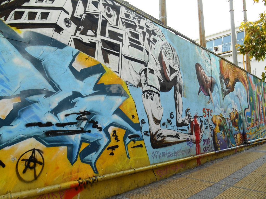 Продолжая тему транспорта: граффити по пути на автовокзал (на шестой день я поехала в Дельфы, и решила обойтись без экскурсии с гнусавым гидом и стадом туристов, поехала, как греки ездят).