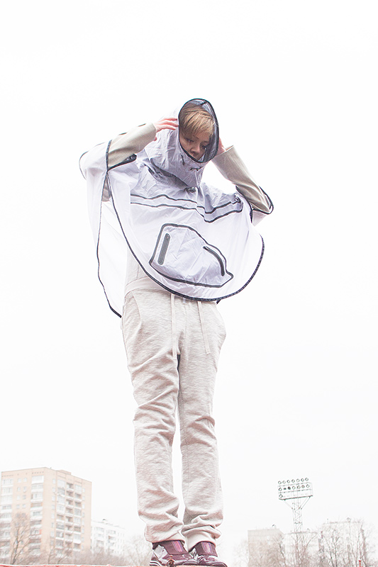 На самом деле, и накидка, и космические ботинки — спокойно встраиваются в повседневный образ. Дождевик я буду носить, конечно, весной и летом (тем более что зонты ненавижу иррациональной, и поэтому совершенно непобедимой, ненавистью). Ботинки же вообще оказались совершенно универсальной вещью — пойми из этого.