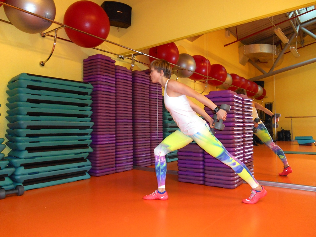 Всё-таки это круто, когда кто-то знающий может тебя корректировать. Пока я жму гантели на камеру, Настя Котельникова подкручивает мне колени.