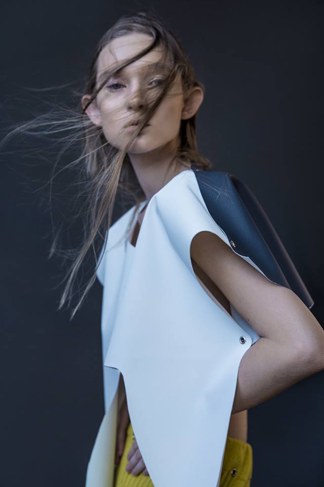 Штуки из кожзама — разгул формы, форма в чистом виде. Здорово, когда дизайнер не боится такое делать. (А недизайнер — носить).