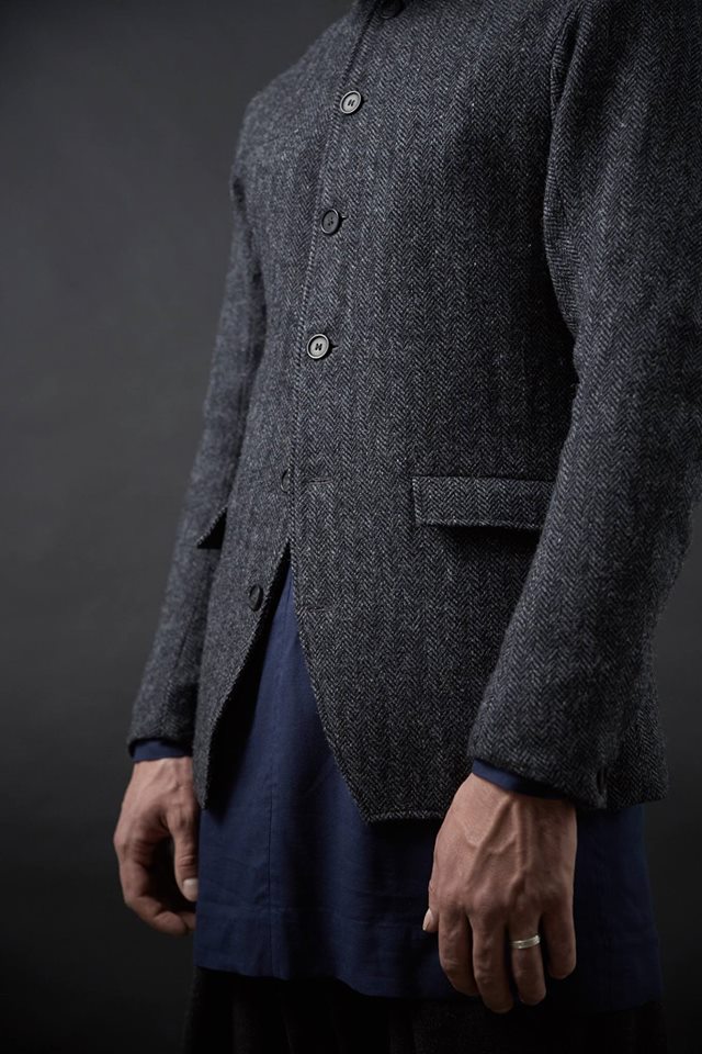 Название этой чудесной марки мне удаётся вспомнить и выговорить примерно через раз, и то не без подсказки; но я его выучу когда-нибудь, потому что одежда уж очень нравится. В «информации» на их странице значится, что это urban ascetic menswear, но, по-моему, насчёт ascetic они кокетничают. Аскет получается какой-то эстетствующий, в курсе про Ямамото и бельгийцев, очень непростой.
