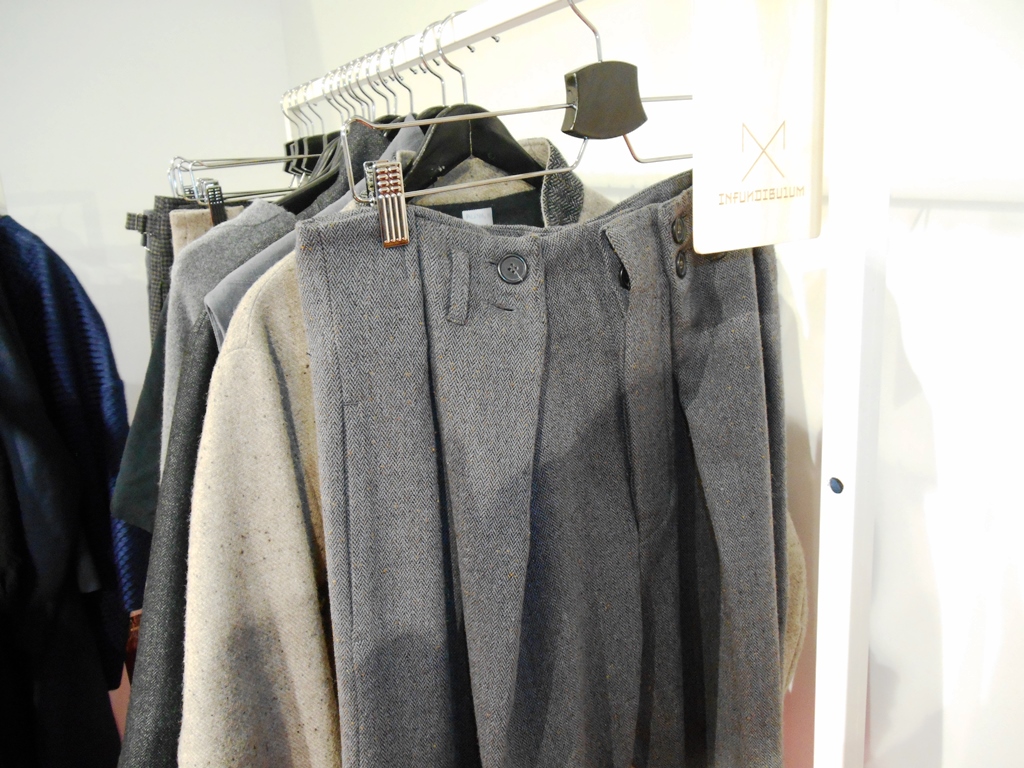 Получается же из года в год любимое слово 2000-х — стабильность. Это абсолютно нормально и правильно, потому что большая часть одежды шьётся всё-таки для людей, которые к моде не имеют особого отношения, но предъявляют к одежде ряд требований, который со временем не слишком сильно меняется. Поэтому среди экспонентов очень много тех, кто делает годами условное одно и то же; вещи отличаются довольно сильно — качеством, а также наличием у дизайнера вкуса и здравого смысла. И если в прошлом году я упоённо фотографировала всё подряд, в этом мне интереснее те, кто делал показ или презентацию в первый раз и потом, скорее всего, будет представлен где-то ещё; «парочка простых и молодых ребят» — недавние выпускники БВШД и сегодняшний состав Designerpool.