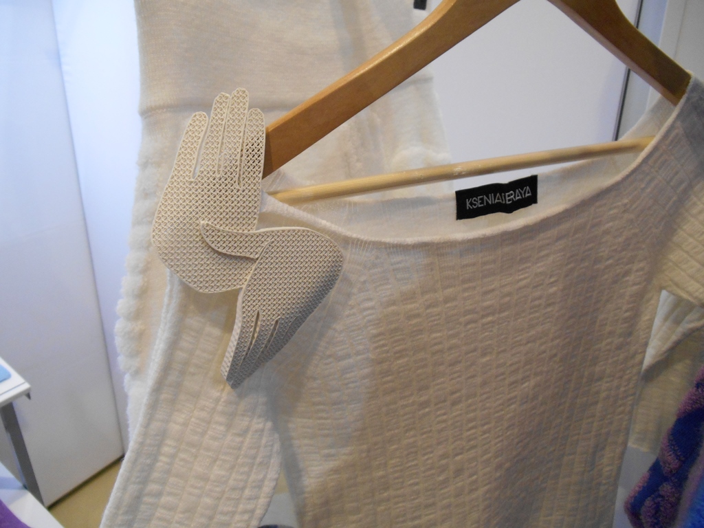 Детали. Тут интересно, потому что вопрос «как же это сделано» никуда не пропадает. Расспросить я не смогла, потому что подошла к Ксении в максимально неподходящий момент — за полчаса перед показом. Но обязательно восполню этот пробел, самой интересно — и как сделано, и откуда ладошки.