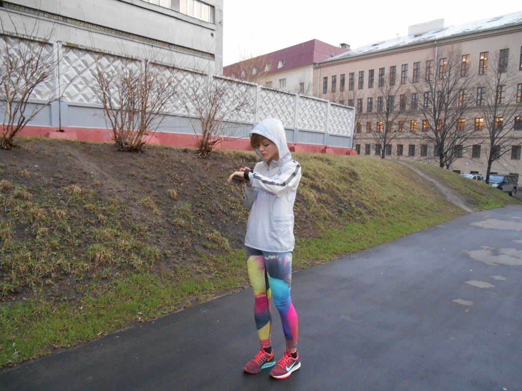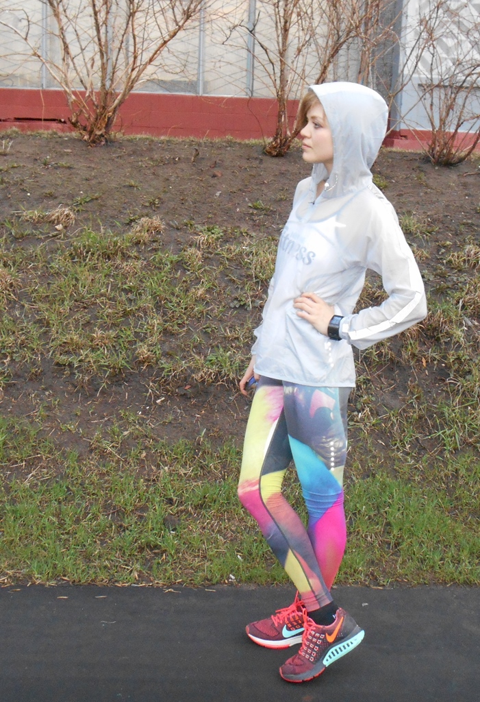 На мне: новая беговая ветровка Nike (наконец-то её можно носить вместо зимней куртки), майка от Nestle, леггинсы Nike Foreverun и кроссовки Nike Structure.
