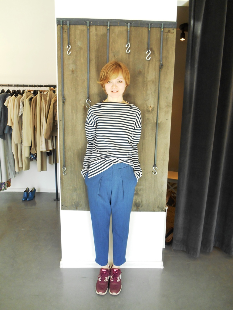 Василькового цвета укороченные брюки — ещё одна заметно-незаметная вещь.