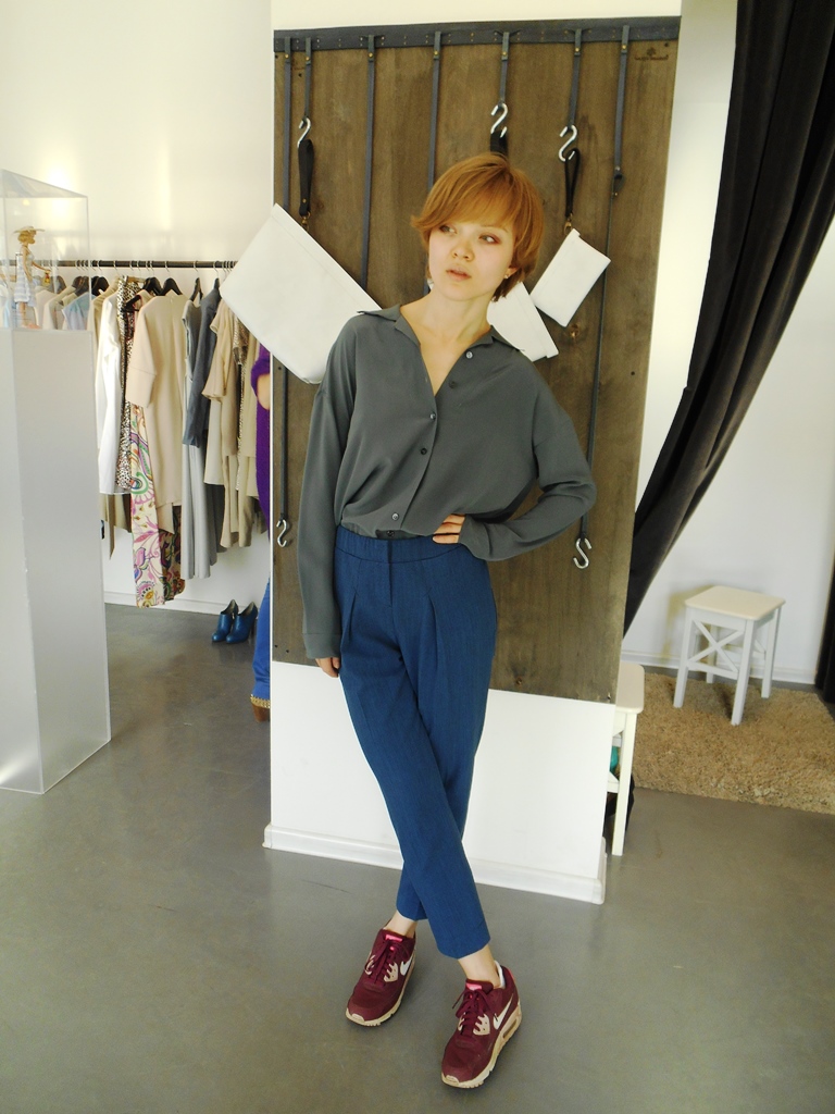 Серая блуза — родная сестра коралловой, понравилась мне даже больше.