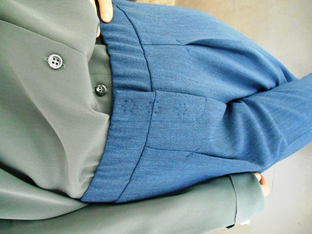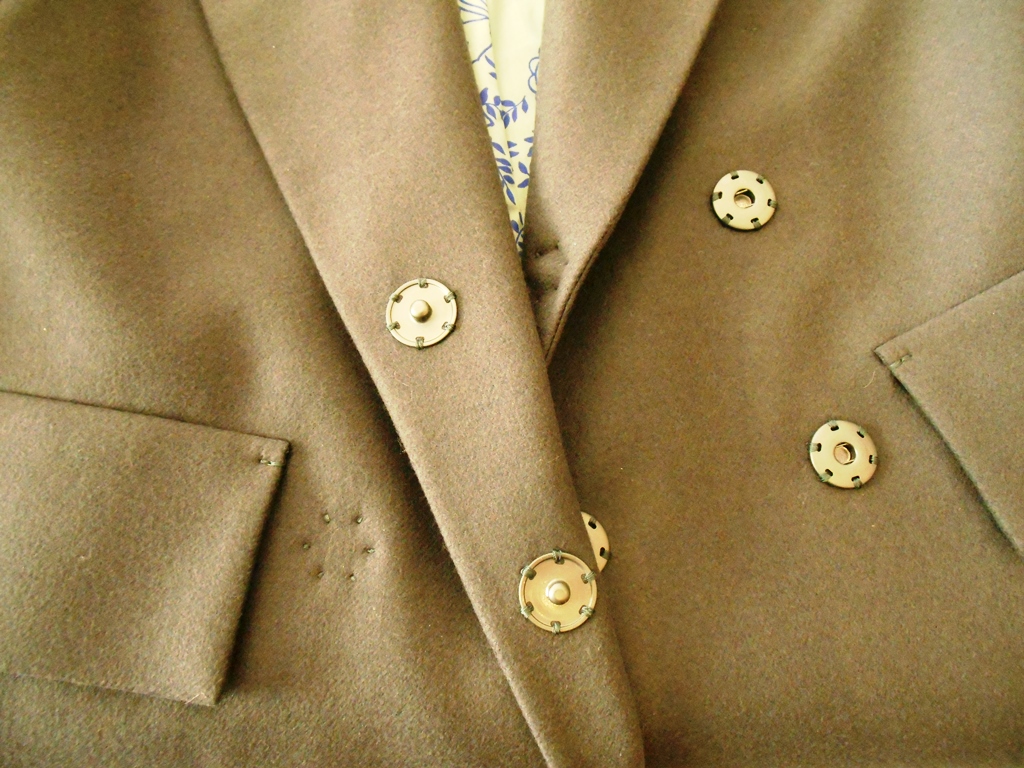 Крой такой, что мурашки по коже. И материал. У меня есть мой собственный загон, касается еды и одежды: это плотность. Я люблю сухари и баранки — и я страшно люблю плотные ткани, прочные, плотные края, надёжные швы и застёжки. А здесь — всё это, плюс безукоризненные пропорции и милые детали вроде узнаваемых, пришитых трогательными стежками больших кнопок. Уходить из пальто не хотелось.