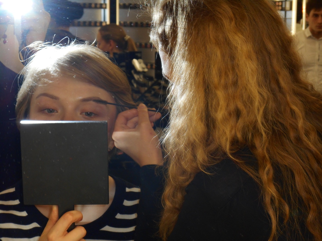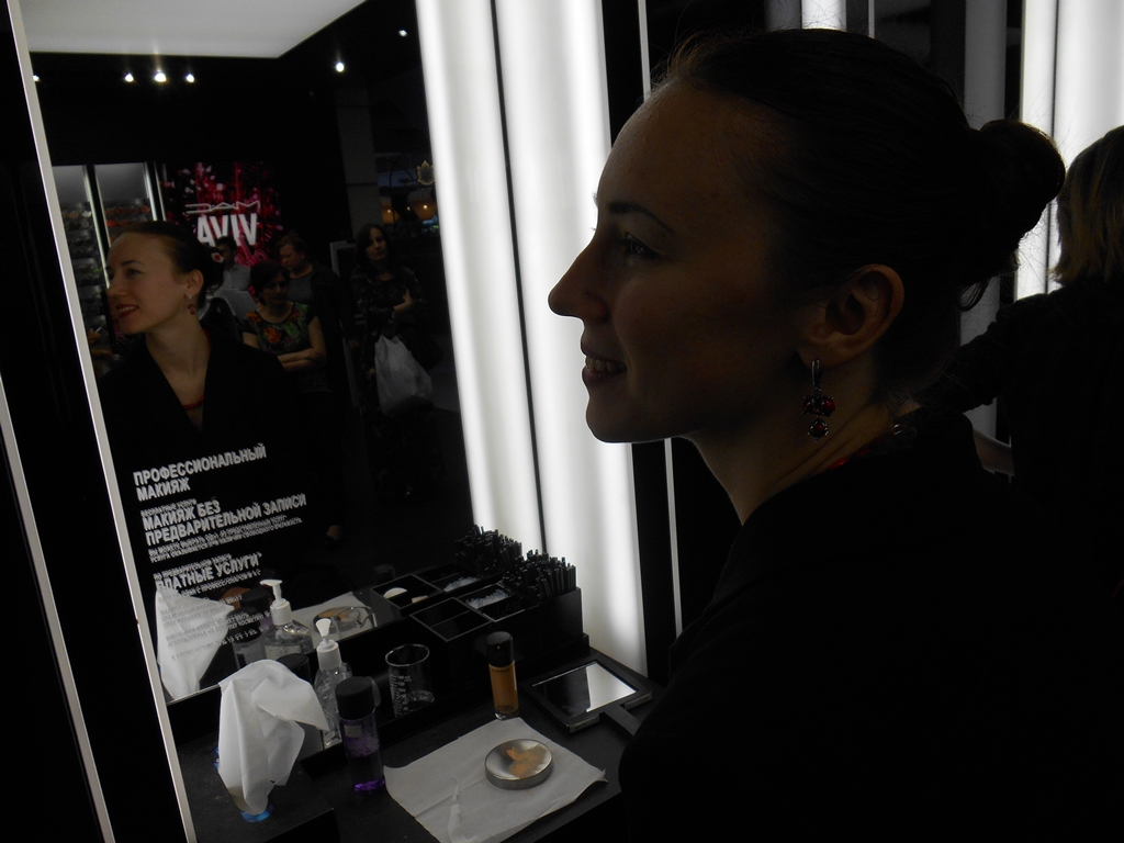 На урок макияжа в M.A.C. мы пошли вместе с Наташей. M.A.C. я давно и нежно люблю, и косметику, и рекламную подачу: они делают акцент не на роскоши, а на экспертности, профессионализме.