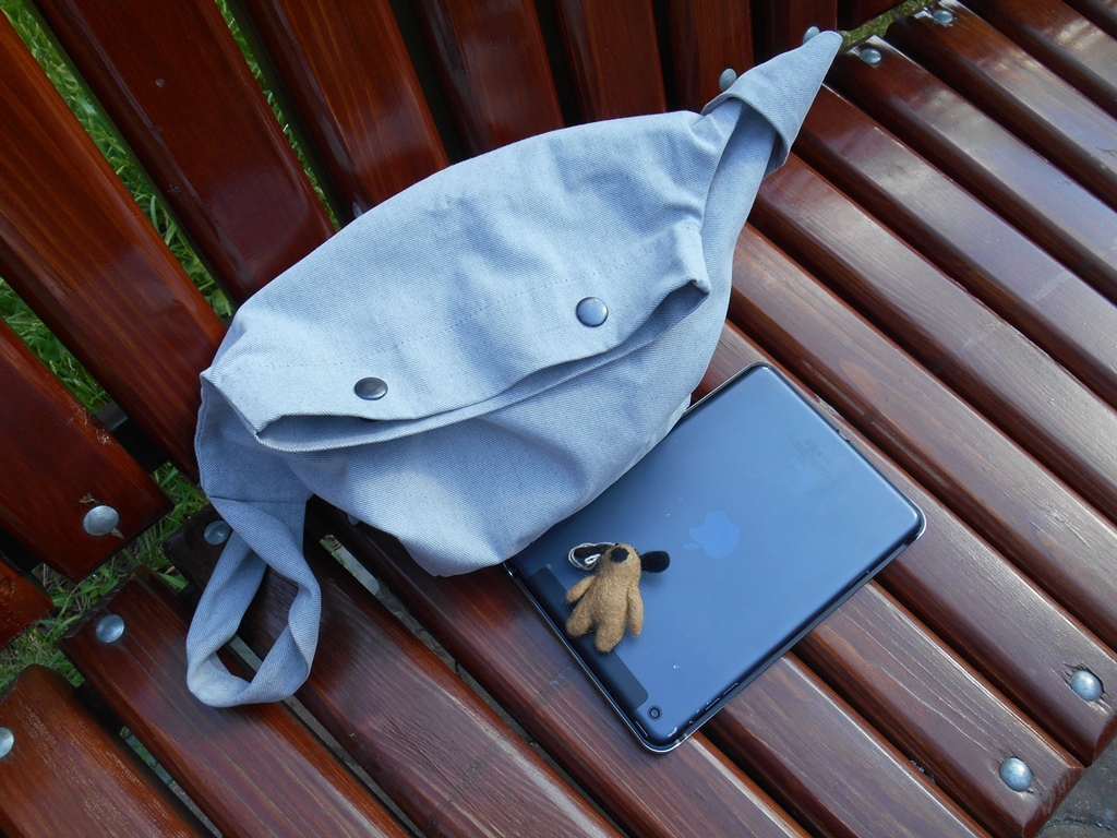 Ася Спорыхина, Intro.Version, выпустила крутую сумку, которая вообще-то поясная, но её можно носить и на спине, и на плече. Скоро появится в «Хохловке». Сделана из плотной джинсы, без подкладки, с очень забавными кнопками-глазками.