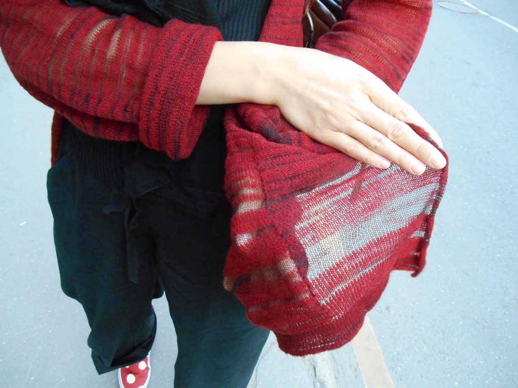 Людмила сказала, что кардиган связан однофантурной чулочной гладью, а карман ввязан по бесшовной технологии. (Вспоминается Станислав Лем: неизвестная технология для дикаря = магия. Нелестно, но верно).