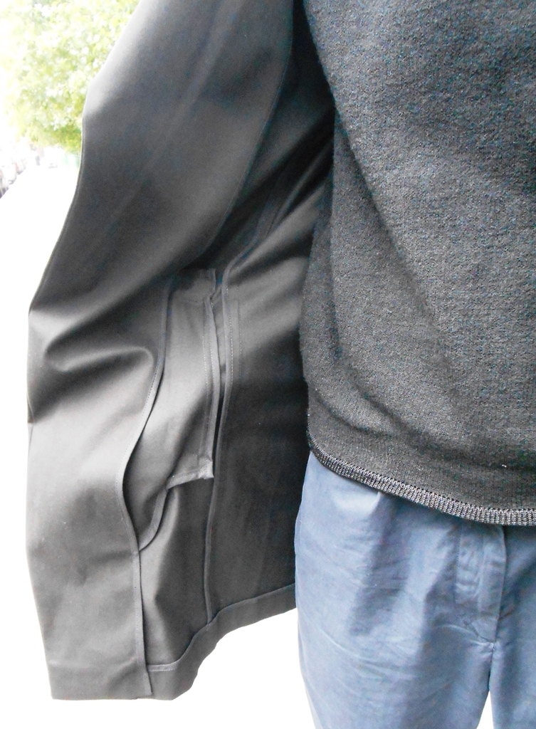 Далее я, конечно же, начала мерить пиджаки. Подошел вот этот пиджак-пальто из плотного, очень приятного на ощупь хлопка. Очень питерская вещь, и очень спасает холодным летом в Москве.