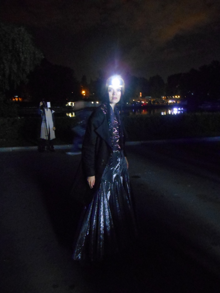 Налобный фонарь значительно облегчает поиски нужного в сумке — не говоря уже о том, насколько он делает приятнее прогулки по неосвещенным тропинкам. Дома я устроила генеральную репетицию перед зеркалом, в темноте; увидела яркий круг от фонаря и серебристое мерцание юбки. Очень я, подумала я, берём.