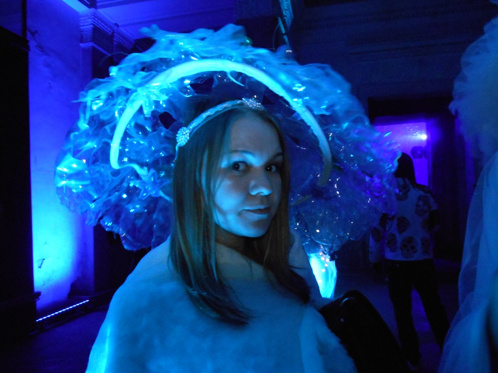 Я оделась просто собой — Роботессой. Костюм уже висел готовый, из «Одиссеи» Гасилина, я добавила лишь пальто от Илькина и налобный фонарь (аксессуар номер один, по опыту предыдущего «Мидсаммера»), замаскировав его бисерным шарфом.