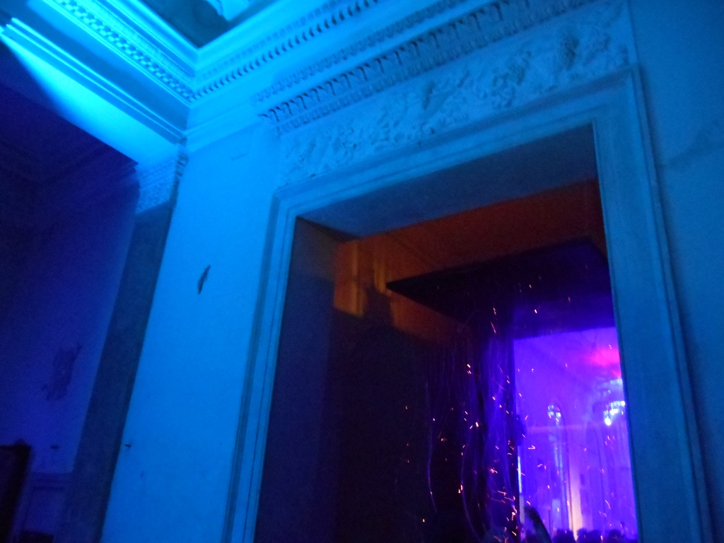 В полночь открыли особняк, тот самый, с остатками вывески «Ресторан» на крыше. Мы с подругой, когда раньше гуляли в этом районе, всегда с восхищением его разглядывали и сокрушались. что такое дивное и гармоничное здание стоит и просто разрушается, никому не принося радости. А в эту ночь его открыли; меньше всего эта сталинская постройка похожа на сталинскую постройку — столько вкуса и аккуратности в пропорциях и декоре. Я на время забыла о костюмах и вообще о людях вокруг, исступленно фотографируя потолок.