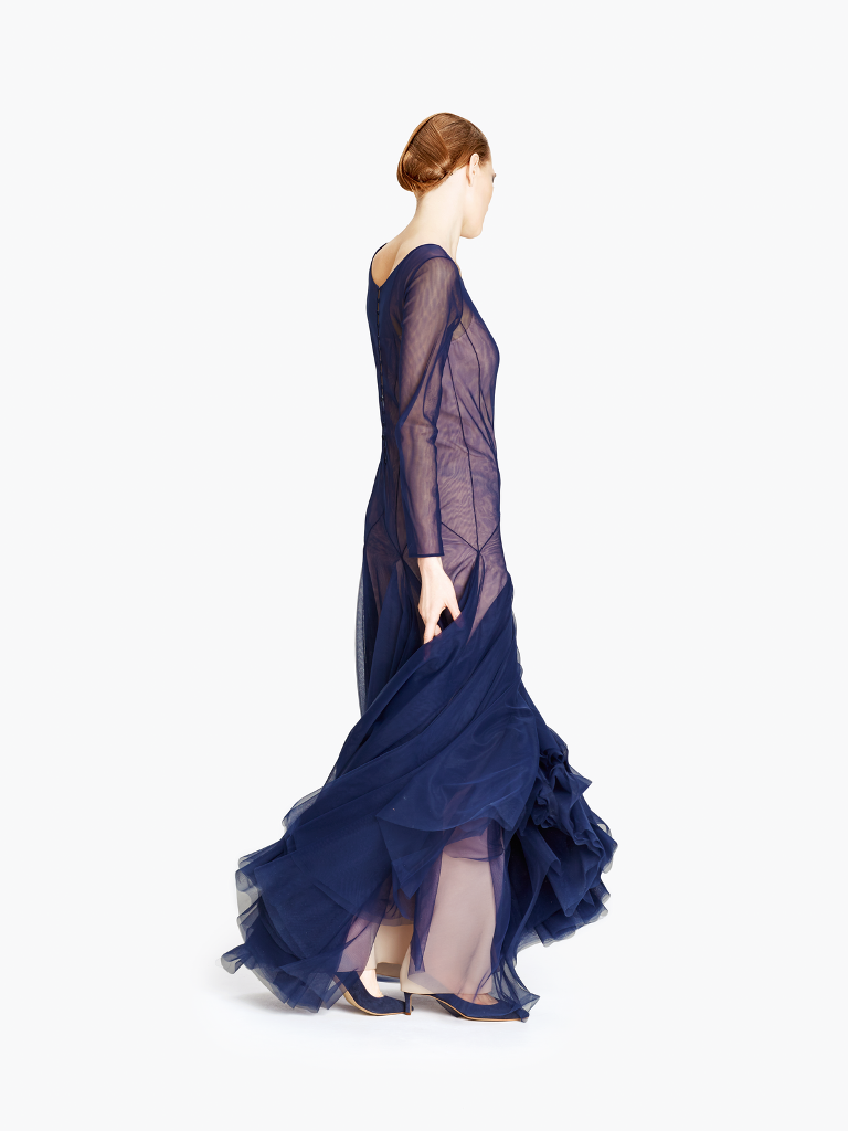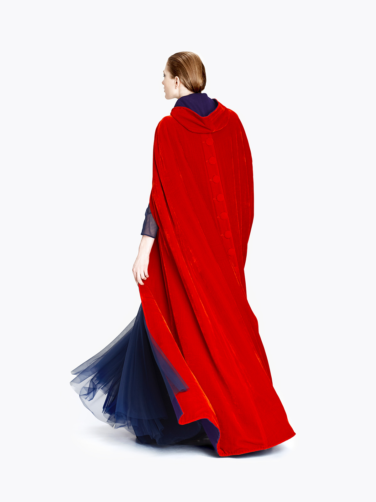 Это платье — чистый стиль. Разумеется, у меня нет представления, куда в нём и зачем; и для него, и для кейпа нужно создать такого же уровня фон — подойдут опера, балет, приём в посольстве и прочие леденящие душу обстоятельства, где надо осанку и каблуки. Речи о функциональности не идёт, оно для сильфиды («Куда я иду? — К дочерям воздуха!»)