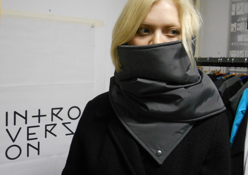 Шапка «шлем авиатора» и шарф на кнопках существуют пока лишь как образцы, и я очень надеюсь, что в новой зиме они появятся в виде тиража; шапку я только видела на фото, а шарф ношу сама, и он совершенно прекрасен. Убежище интроверта и профилактика гриппа — 2 в 1.