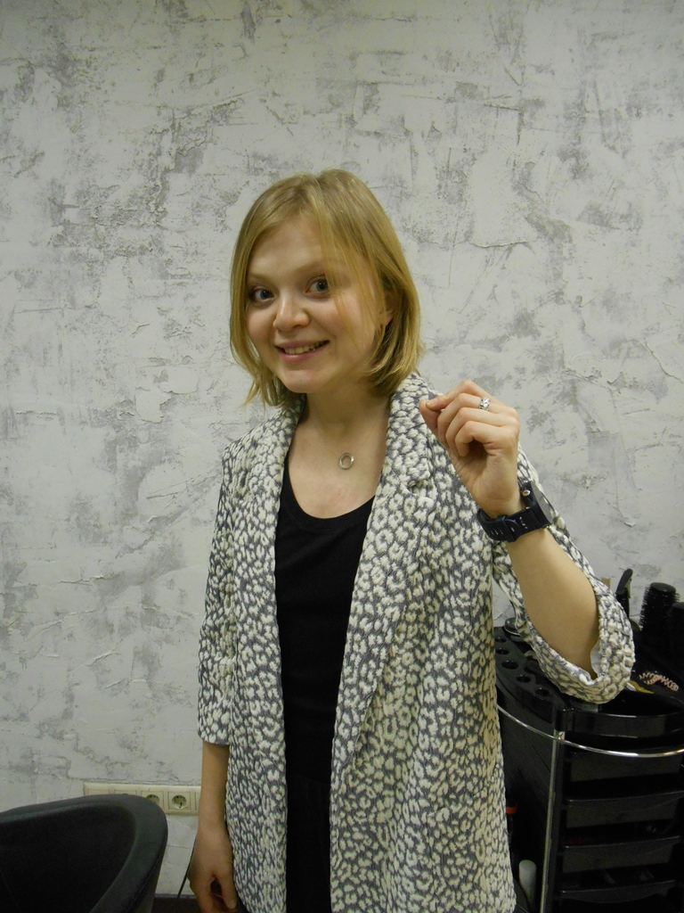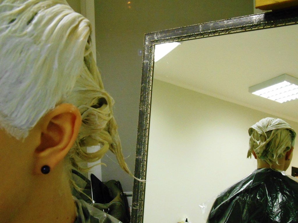 Лариса, которая меня красила и стригла, по ходу дела рассказывала интересные вещи. Например, что с мечтой о белых-белых волосах мне стоит попрощаться навсегда: светлые волосы так не отбелить. Темные можно, а светлые вроде моих — нет, они всё равно будут желтоватыми, и только тонированием можно несколько повлиять на оттенок.
