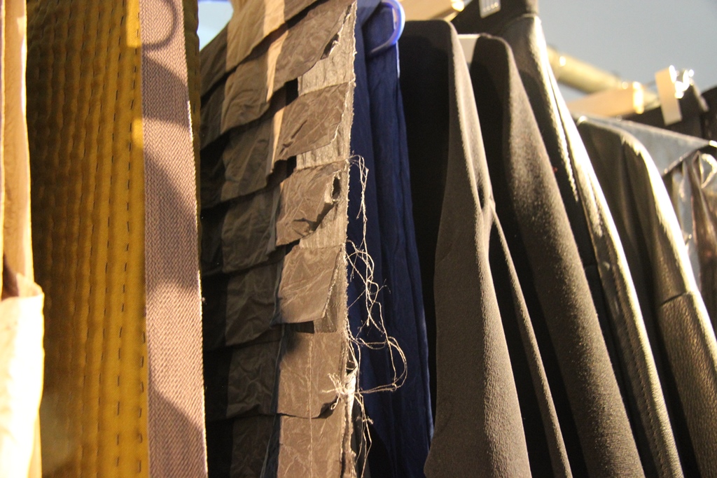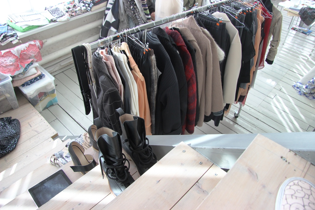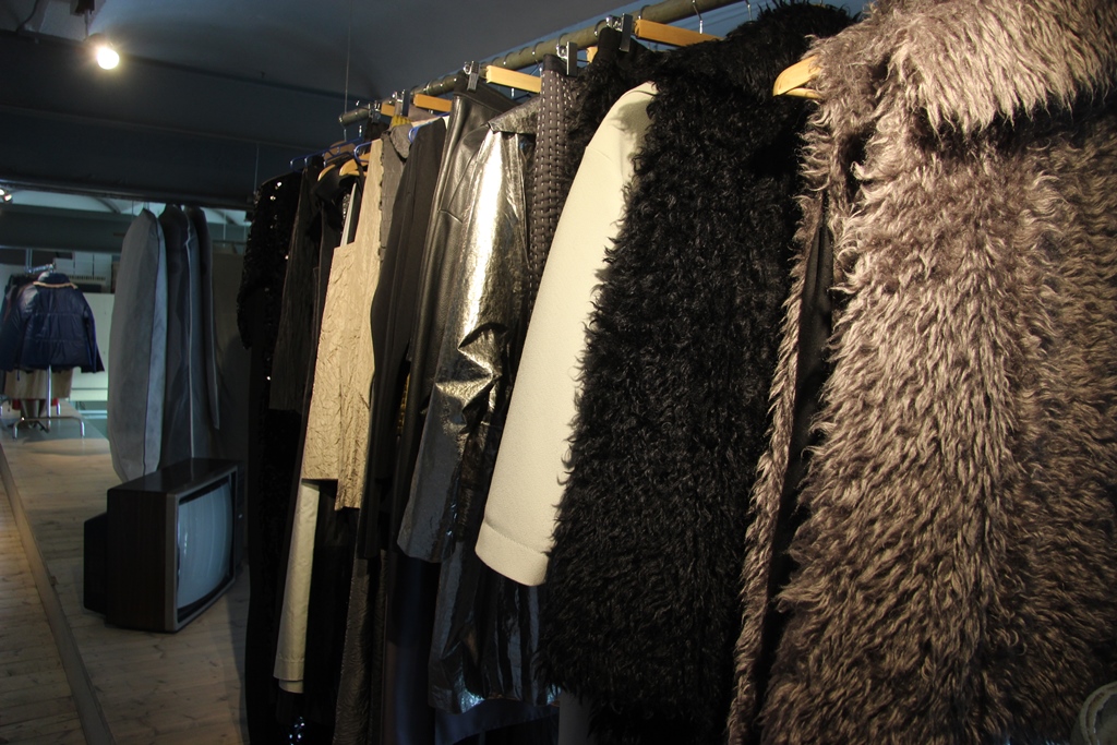 Рейлы с платьями выглядят как арт-объекты с собственной композицией, причем вещи на них можно менять местами, а единство останется.