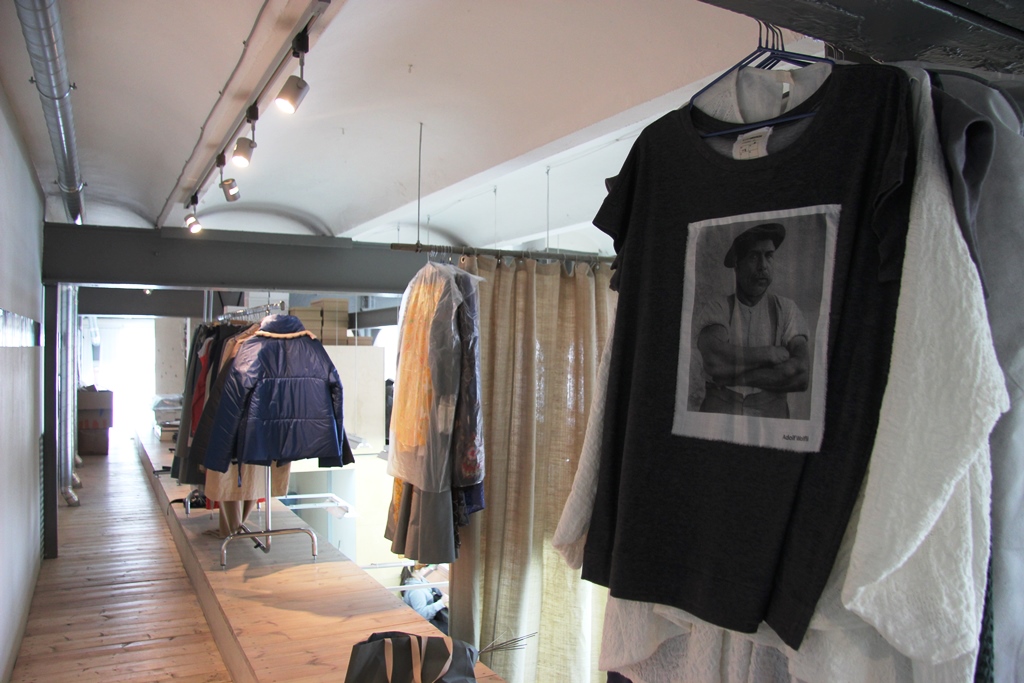 Ателье Юлии Николаевой — удивительное место, и очень при этом похожее по стилю на одежду её дизайна. Та же гармония, то же отношение к лицу-изнанке (изнанка такая красивая, что её можно спокойно выносить наружу), та же безупречность в обращении с грубыми фактурами и необработанностью, та же спокойная уверенность в решениях, даже те же цвета.
