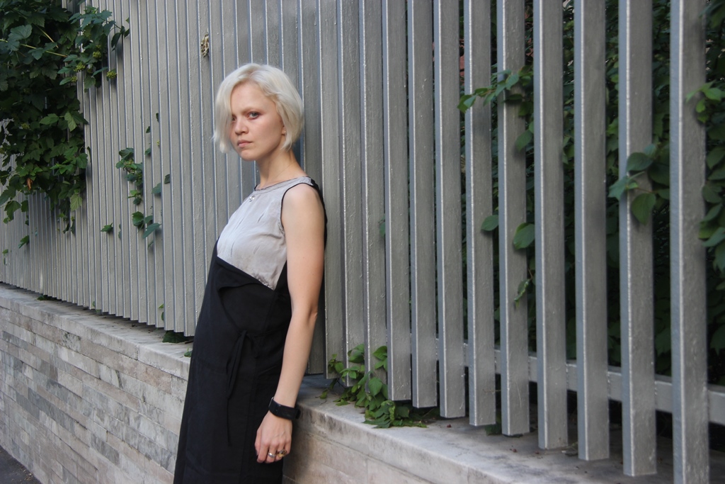 Кроме рубашки, в тот раз мы успели снять ещё несколько вещей Ксении: рукава-кимоно-платье, шелковый топ и черный двухфактурный сарафан.