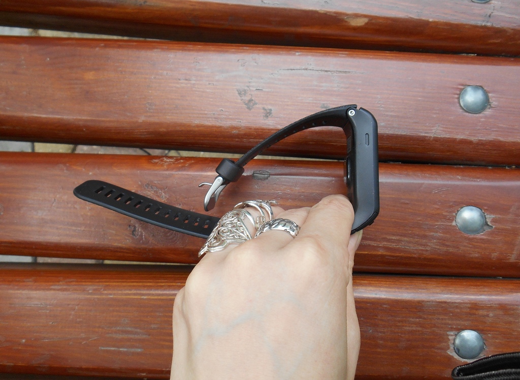 Надо сказать, у этого шнура — самый хитросделанный разъем из всех, что мне встречались; и он еще и тугой, то есть надо прикладывать некоторое усилие, чтобы освободить часы из тисков. Этот момент — единственное, что я бы поменяла, например, на гораздо более удобный разъём-прищепку.