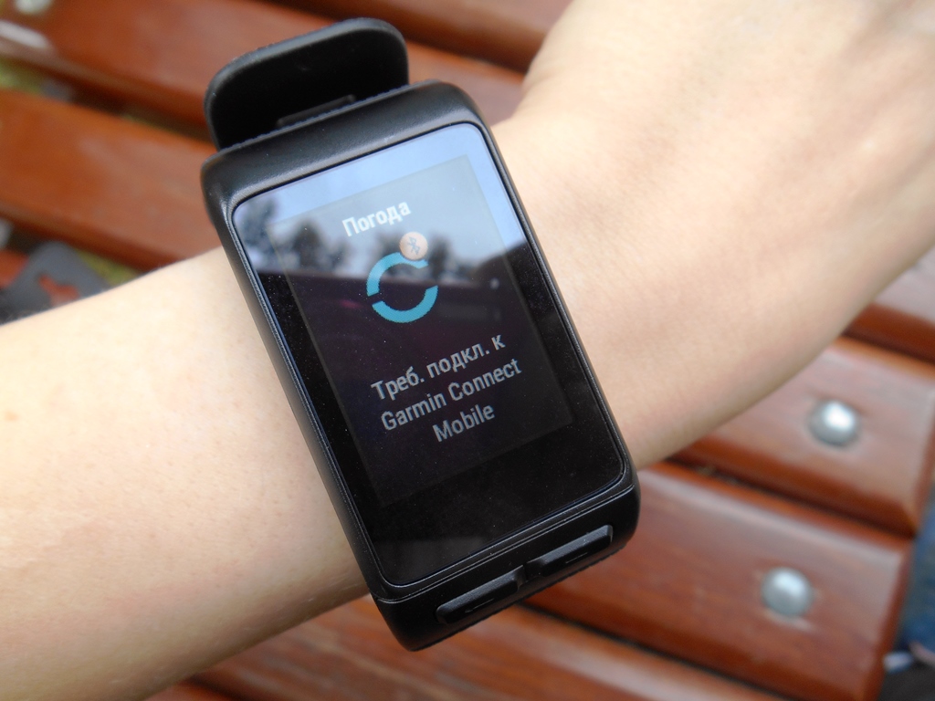 Лучше всего сразу синхронизировать часы с Garminconnect на телефоне: они после этого будут сразу же загружать на сайт ваши тренировки, а также будет доступен прогноз погоды и уведомления о звонках и смс. Я вот неудачно уронила свой телефон на андроиде в середине теста — и теперь вижу вместо погоды вот это.