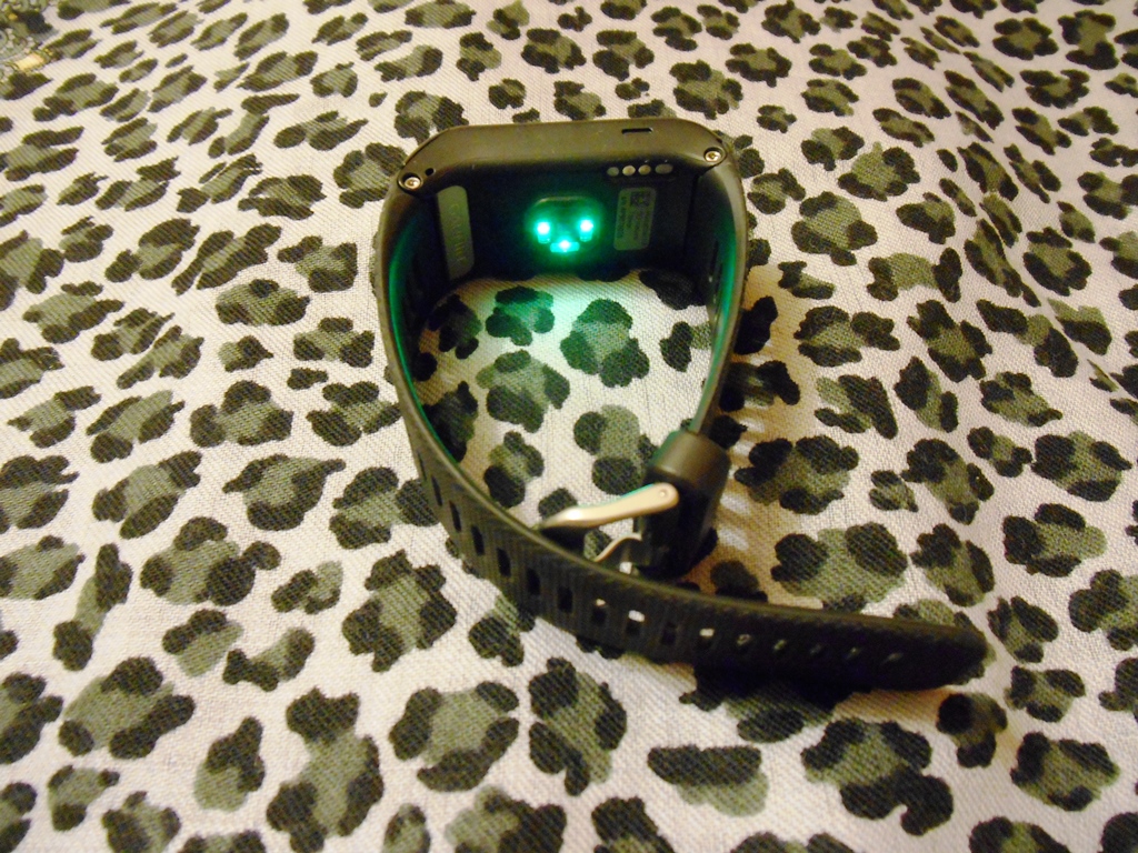 На внутренней стороне горит мистическим зелёным светом датчик пульсометра Elevate.