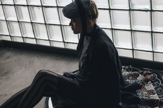 Во-вторых, он, что называется, заставляет задуматься. О дизайнерской оригинальности, её сути и её ценности, особенно сегодня. Если начать разбирать его вещи на элементы, то это легко получится. (Чтобы собрать обратно, надо быть всё-таки профессионалом: я вот собрала, и много лишних шестеренок осталось). Мужской костюм с подчеркнутыми деталями — причем иногда вынесены наружу невидные, типа подтяжек для носков; тщательная застегнутость, пуговки. много пуговок, до самого подбородка. Аппликации в той же серой гамме. Серая помада на бледном лице, или это посиневшие губы офисного призрака. Черные очки в металлической оправе — вот и готов Том Браун.