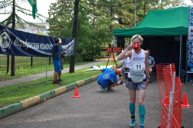 Еще тренер выносил мне еду-питьё всю вторую половину суток. Из моих 180 км он параллельно накрутил, кажется, не меньше трети: выбегал мне навстречу, спрашивал, что я буду, возвращался бегом назад, наливал и выносил мне прямо на трассу. Это делалось, чтобы я не останавливалась, а хотя бы шла. (В первой половине суток я потратила много времени на остановки — это ещё один урок). Под конец я уже не могла говорить, и попросила его просто чередовать гели, кисель и бананы.