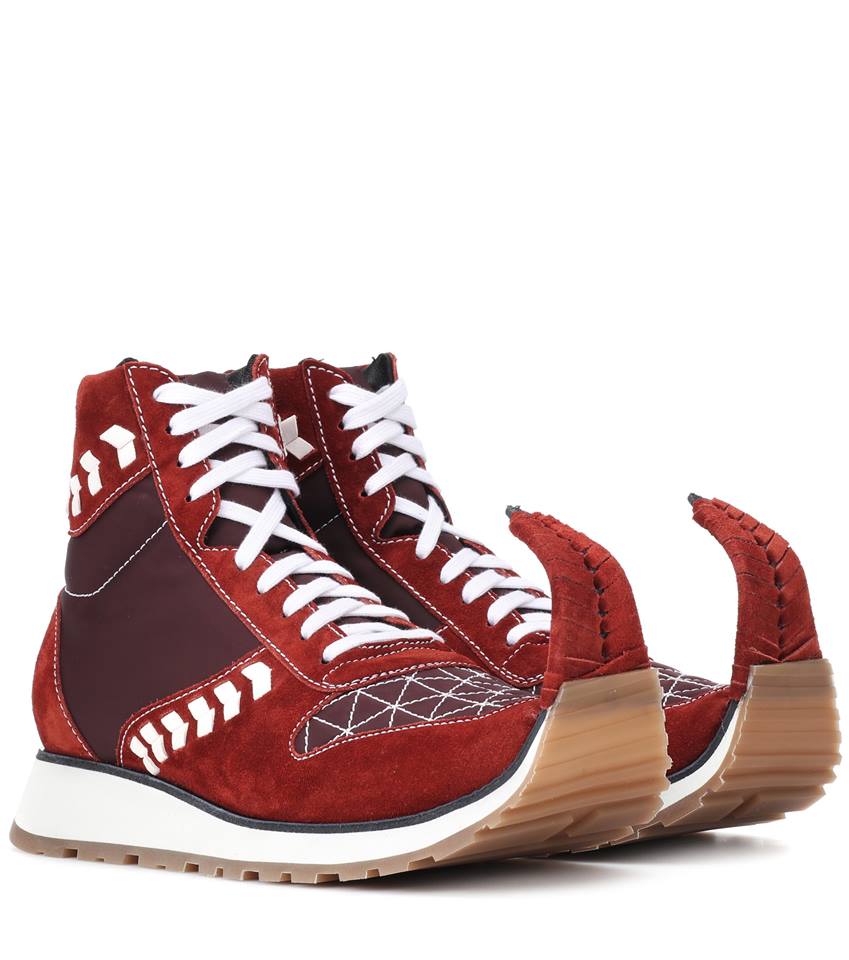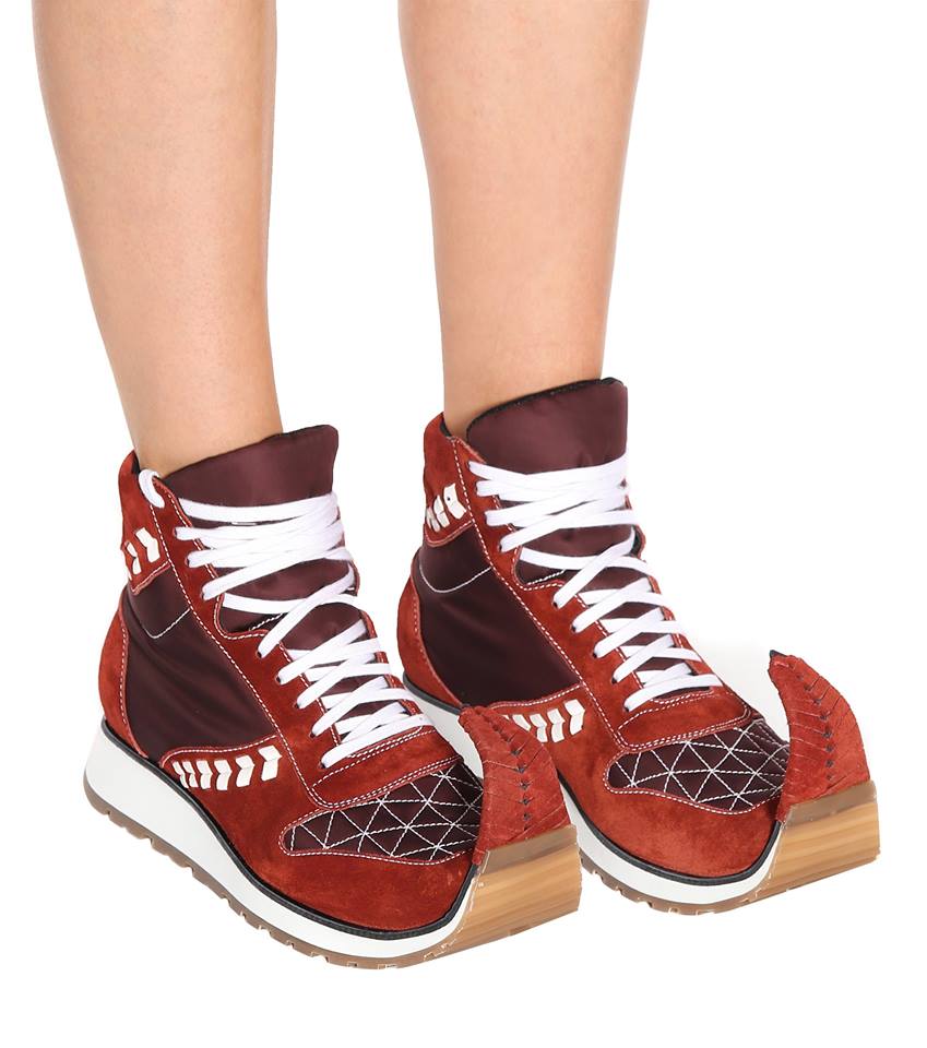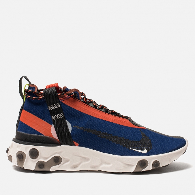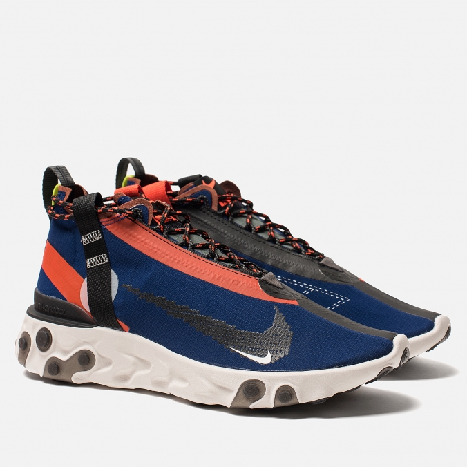 Я вспомнила колонку Катерины Кулиничевой про реакты для жизни: Nike React Element 87. Пошла их смотреть в разных интернет-магазинах, и увидела вариант, который был на самом деле другой моделью, просто с такой же подошвой — Nike React Mid WR ISPA. Сначала хотела белые, но они слишком белые, и спорили бы с цветом «рубахи» и трико. Выбрала синие, и это оказалось удачным. Не знаю, почему, но я была уверена, что делаю правильно — несмотря на то, что на оригинальную мягкую балетную обувь они похожи мало. В них есть та смесь современности и архаики, которую я искала.